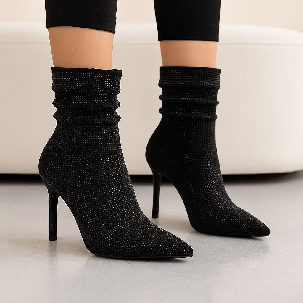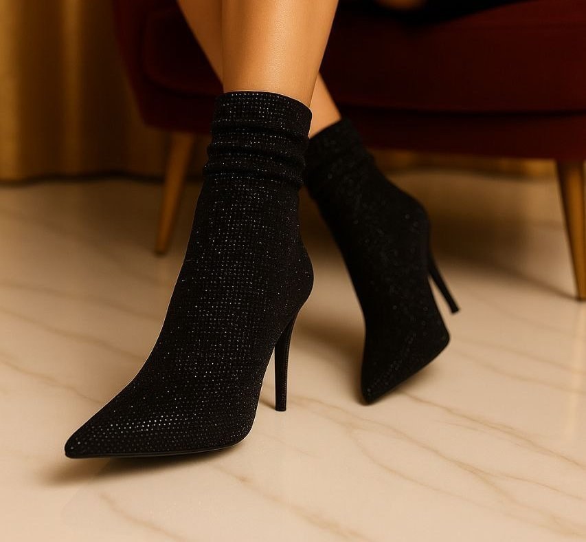 این بوت نگینی زنانه بهخوبی با مانتوهای مجلسی، پالتوهای کوتاه و بلند، شلوار جذب و لگ ست میشود و گزینهای ایدهآل برای مهمانیها، مجالس و استایلهای خاص و لاکچری است.