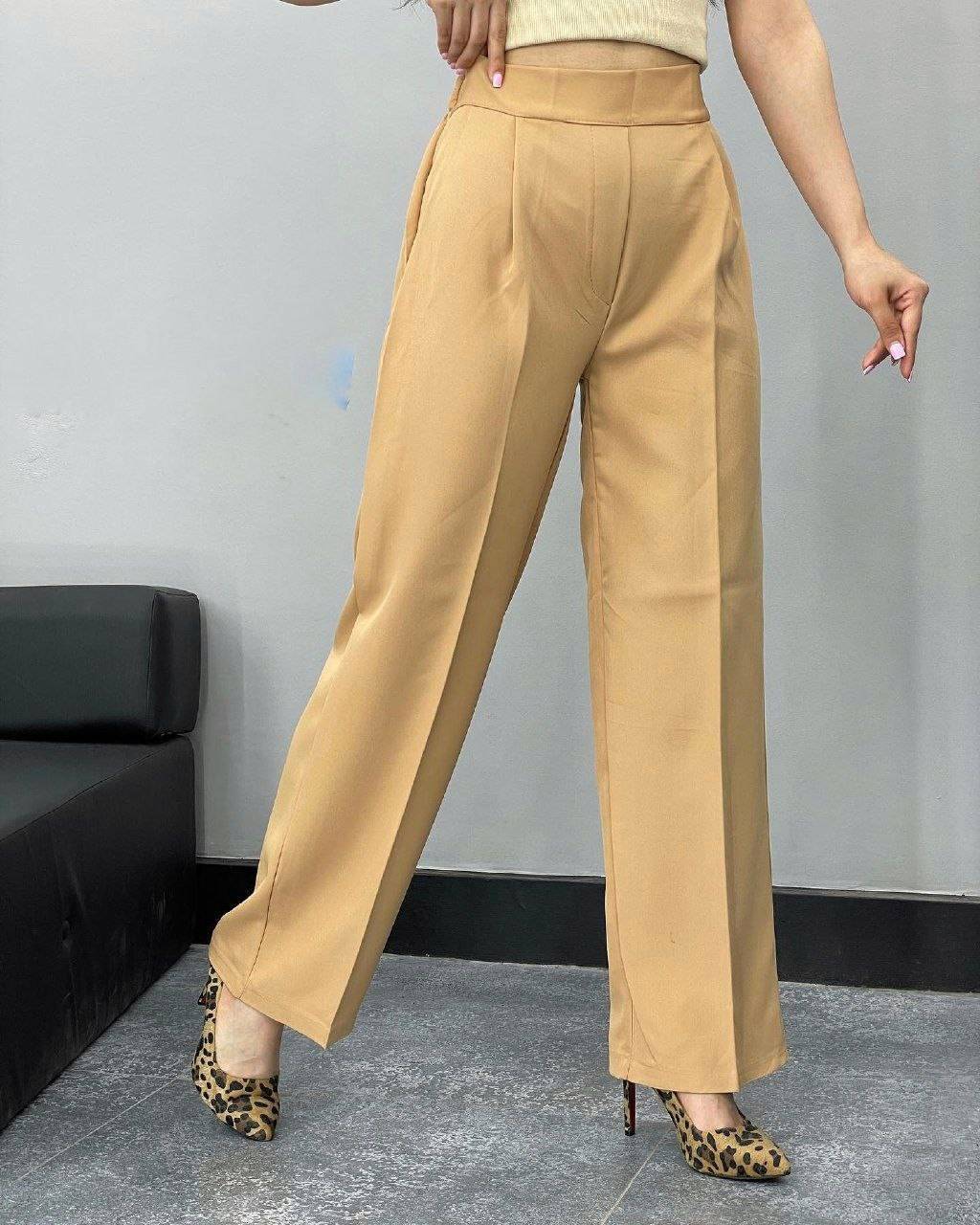 خرید شلوار زنانه نیم بگ مجلسی با پارچه کرپ مازراتی، قد 100 و رنگبندی متنوع؛ مناسب استایل رسمی و شیک.