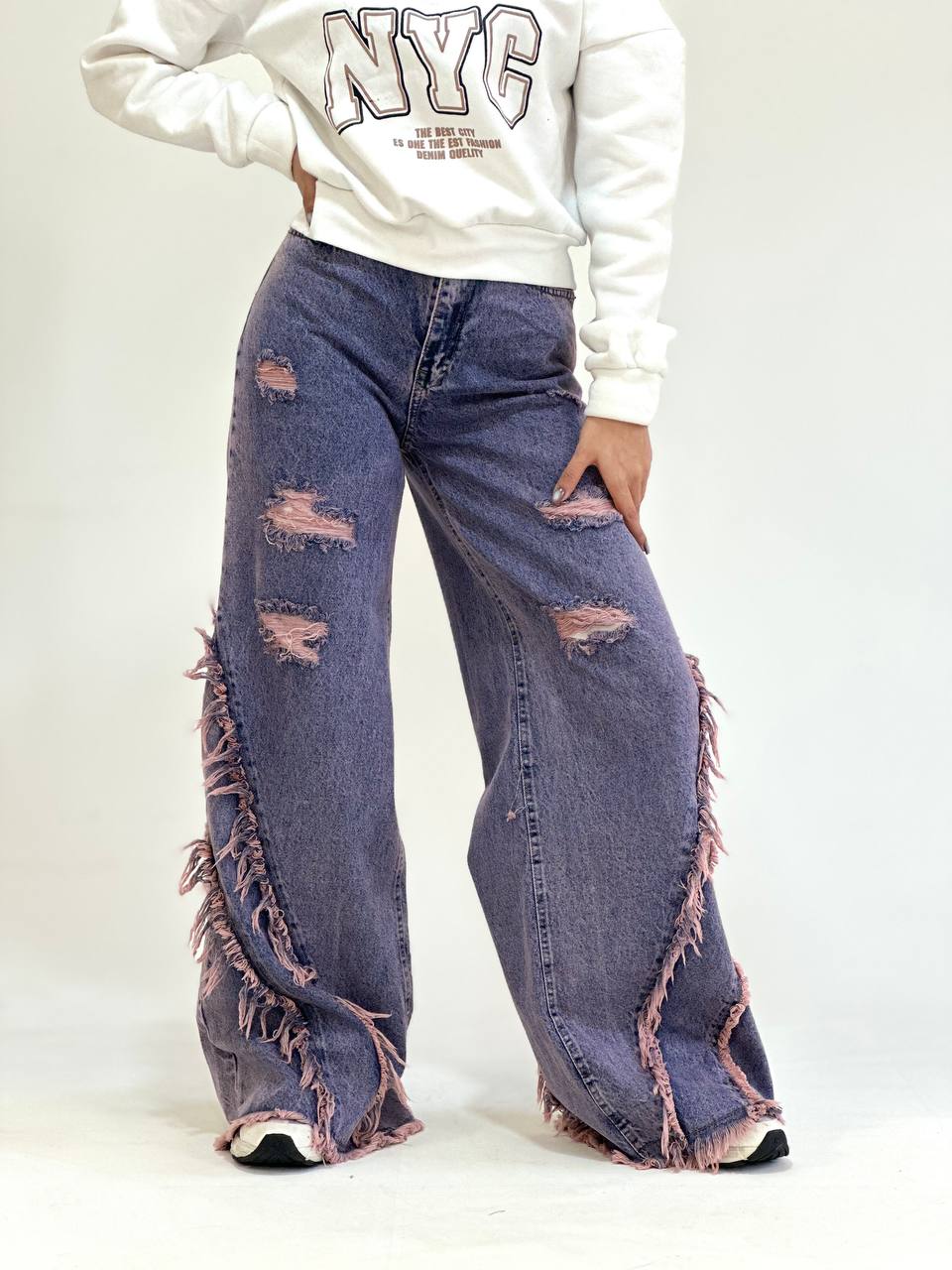 شلوار فول بگ زنانه صورتی بغل دمپا ریش زاپدار با ترکیب رنگ خاص و طراحی متفاوت، گزینهای ایدهآل برای افرادی است که به استایلهای جسورانه و مدرن علاقه دارند. رنگ صورتی جلوهای لطیف اما چشمگیر به استایل میدهد و بهراحتی با آیتمهای ساده یا مینیمال ست میشود.