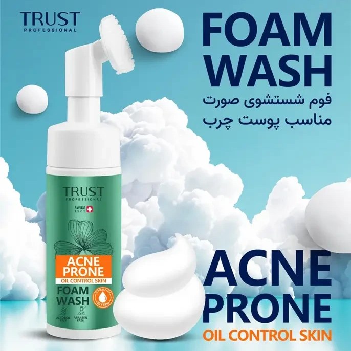 فوم شستشوی صورت پوست چرب و مختلط تراست Trust cleansing foam for oily and mixed skin پوست صورت را به صورت عمقی از انواع آلودگی ها، چربی اضافه و مواد آرایشی پاک سازی می کند، از دیگر ویژگی های این محصول این است که میزان تولید چربی در پوست را تنظیم کرده و به همین دلیل جوش و آکنه را کاهش داده و هم چنین در کوچک شدن منافذ باز پوستی بسیار تاثیرگذار است، این فوم شستشو مناسب استفاده برای پوست های چرب و مختلط بوده و باعث آب رسانی و حفظ رطوبت در پوست می شود و در نتیجه از به وجود آمدن خشکی پس از مصرف محصول جلوگیری می کند،