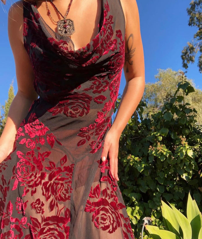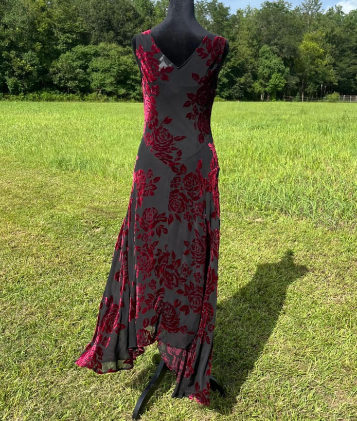 وجود گلهای برجسته روی لباس، جلوهای سهبعدی و خاص به طراحی داده و آن را از مدلهای ساده و تکراری متمایز میکند. این جزئیات بدون شلوغی بصری، لباس را به انتخابی شیک و متعادل برای مجالس، مهمانیها و مراسم رسمی تبدیل کرده است.