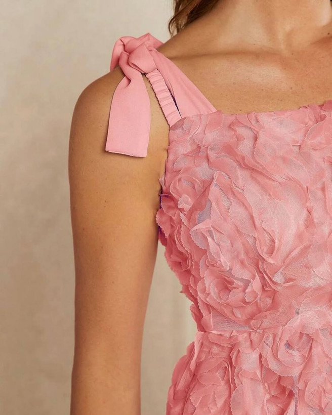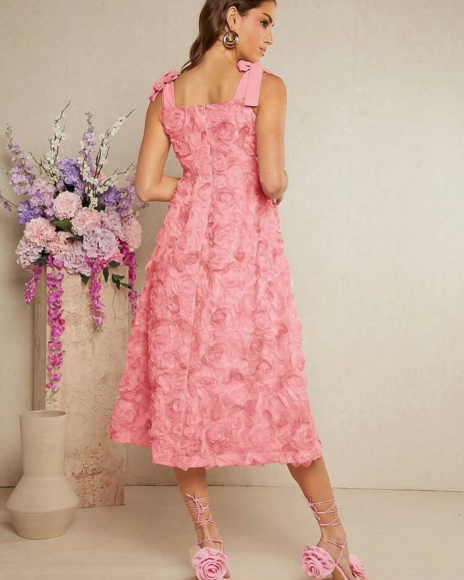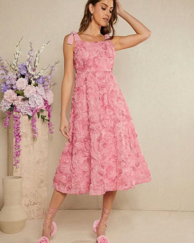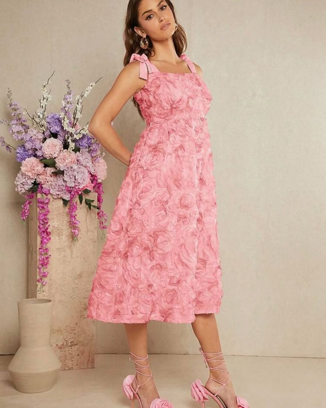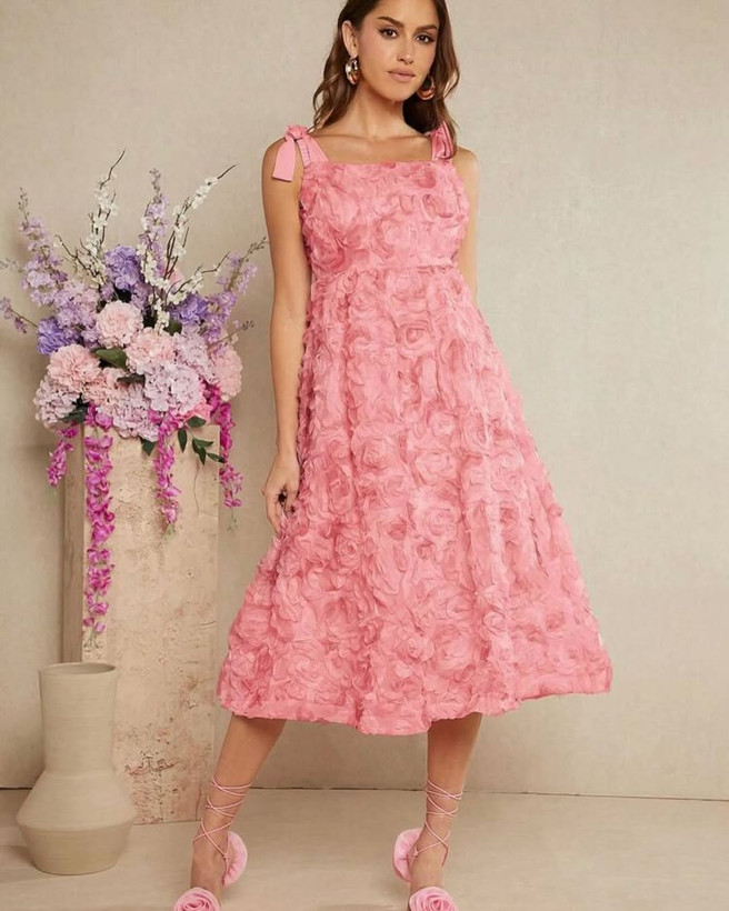 لباس مجلسی گل برجسته بهاری با طراحی لطیف و پارچه با کیفیت بالا، انتخابی ایده‌آل برای مهمانی‌ها و مراسم بهاری با استایلی شیک و زنانه است.