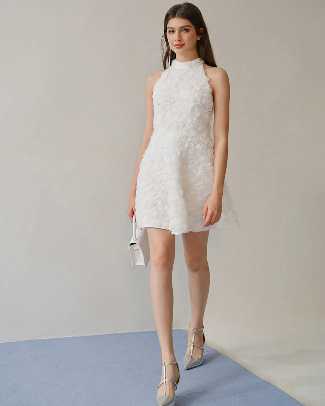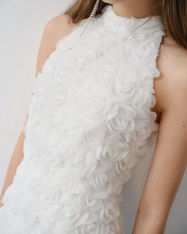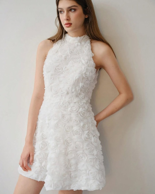 نام محصول: لباس مجلسی گل برجسته بکلس سفید